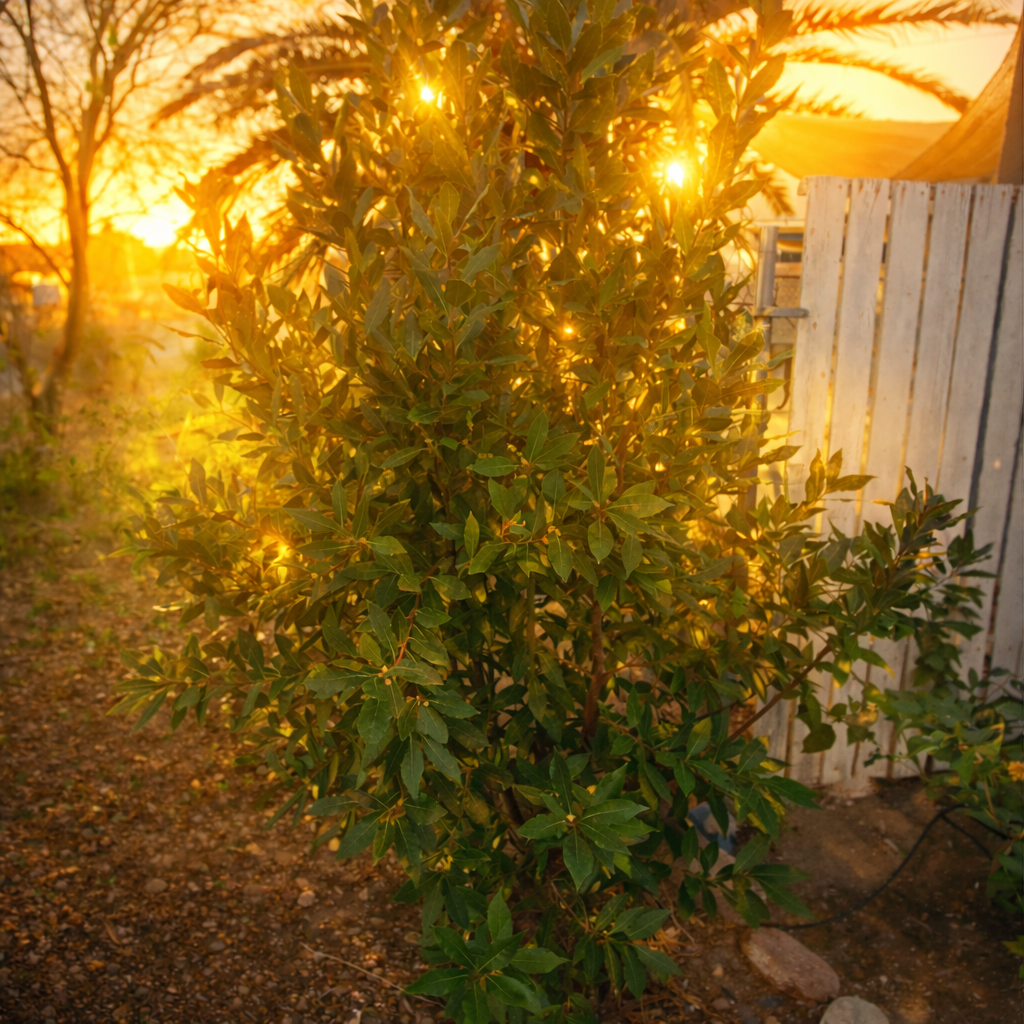 My bay leaf tree glowing in the early morning light. These same leaves that flavor soups can also be used to make a simple herbal tonic, tea, and broth.