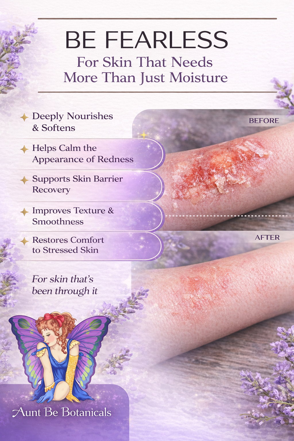 Each ingredient in Be Fearless was thoughtfully chosen to support skin that feels dry, fragile, inflamed, or slow to recover.
